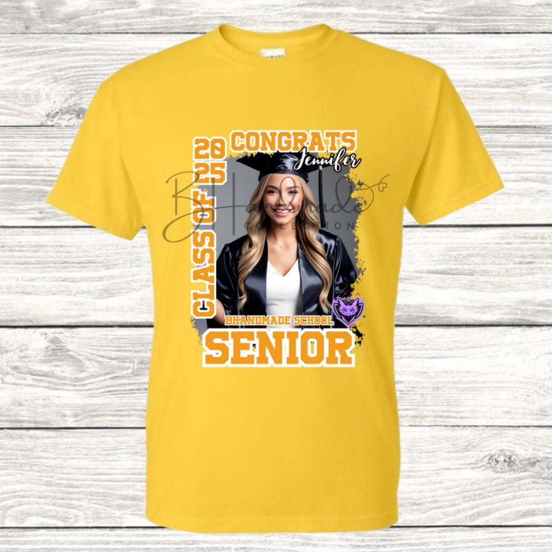 Custom Graduation Shirt | Class of 2025 | graphic style 13| Photo, Name, School Colors