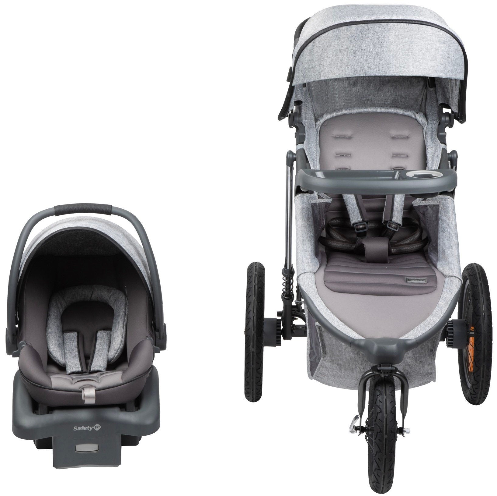 * Protection from the elements with an extra-large retractable canopy with sun visor