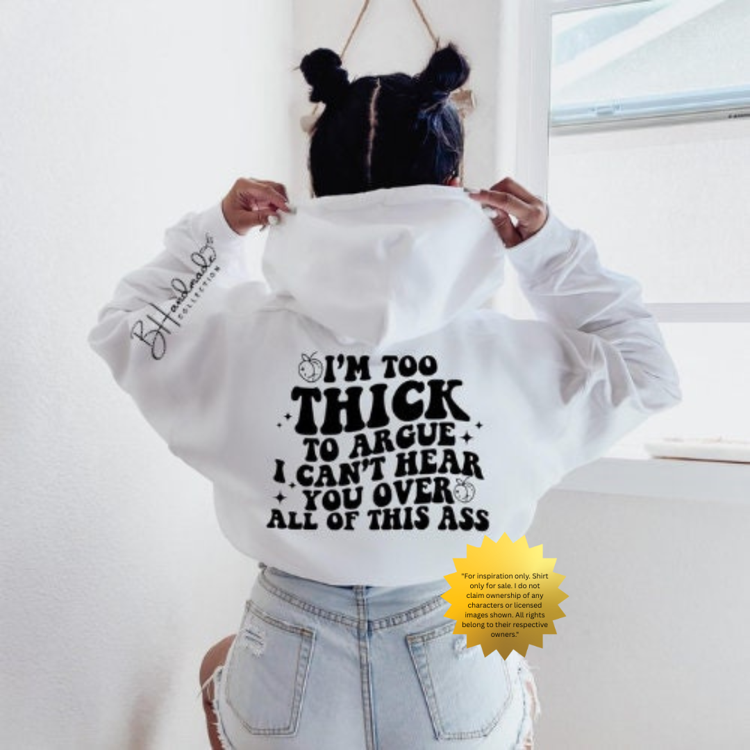With a fit that flatters every shape and a design that sparks conversation, this shirt is the perfect blend of fun and casual cool. Each shirt is crafted with care, built to last, and made to show off your unique personality. Ready to claim your spot as the one who’s too thick to argue? Grab your new favorite tee today and wear your vibe loud and proud.